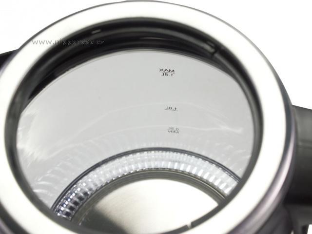 Skleněná nádoba, sítko na čaj, modré LED podsvícení, obsah 1,8 l.