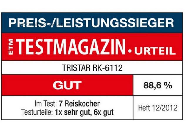 Rýžovar Tristar RK-6112 má průhledné víko s parním ventilem, přepínač zapnuto/vypnuto se světelnou kontrolkou, a indikátor maximální kapacity. Snadno se čistí - vnitřní nádoba je vyjímatelná. Provoz je bezpečný - rýžovar je vybaven bezpečnostní pojistkou proti přehřátí a proti provozu naprázdno. Součástí dodávky je plastiková špachtle na rýži a odměrná nádobka na vodu. Robustní rýžovar Tristar je vyroben z kvalitních materiálů.