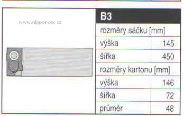 • rozměry sáčku :šíře 450 mm, výška 145 mm