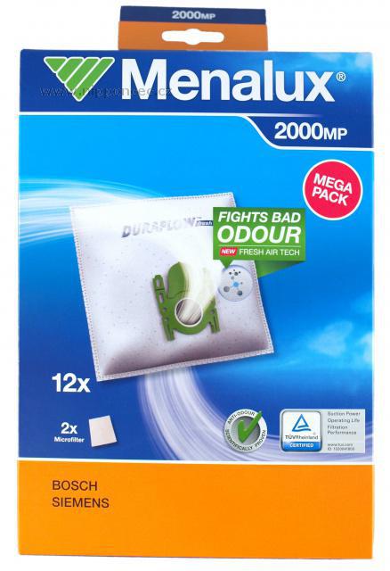 Proč zvolit sáčky do vysavače Menalux 2000 z textilie DURAFLOWTM Fresh: Menalux DURAFLOWTM Fresh = výjimečný sáček: Nové provedení sáčků syntetických sáčků Menalux (to poznáte podle označení na krabici (NEW - Fresh AIR TECH = FIGHTS BAD ODOUR) brání nepříjemným pachům jako jsou odpadky, pach z domácích mazlíčků, pot, cigaretový kouř, aromatické druhy zeleniny jako například cibule, a jiné, v úniku po vysávání ze sáčku. Některé provedení sáčků z netkané textilie je k dispozici pouze v původním provedení, postupně společnost Menalux přechází na provedení nové. Až o 50% delší doba použitelnosti: Syntetické prachové sáčky Menalux z patentovaného materiálu DURAFLOWTM fresh vydrží ve vysavači o dobu až o 50 % delší než normální papírový sáček. Nová struktura materiálu brání snížení sacího výkonu při postupném zaplňování sáčku. Jedinečný syntetický materiál s přídavkem Tego Sorb: Syntetické sáčky do vysavače DURAFLOWTM mají 3 vrstvy: Vnější vrstvu - tavenou - netkanou. Střední vrstva, tavená, je vyrobena z tavené polypropylénové směsi, s přidavkem aktivního činidla Tego Sorb. Toto činidlo vyniká účinností pro absorbci nepříjemných pachů a zajišťuje zachycení těchto typů molekul v tavené vrstvě. Tato vrstva také působí jako filtr, brání ucpání pórů sáčku mikročásticemi a tím zajišťuje jeho trvanlivost. Vnější vrstva - tavená - netkaná - chrání prachový sáček vysavače proti roztržení - tím chrání i dvě předchozí vrstvy, mimo svou filtrační schopnost. Zdravé prostředí díky výborné filtraci: Vynikající filtrace vám pomůže zachovat zdravější prostředí v domácnosti. Syntetický materiál sáčku DURAFLOWTM Fresh je zárukou optimalizovaného průtoku vzduchu než při využití papírového sáčku. To značí, že využití sáčků z netkané textilie DURAFLOWTM Fresh je ideální pro alergické osoby a zajistí všem zdravější prostředí. Hygienické vyjmutí sáčku: Inovativní těsnicí technologie u sáčků Menalux DURAFLOWTM Fresh se postará o to, abyste sáček po jeho zaplnění vyjmuli snadno a bezpečně, bez šíření prachu všude okolo. Kvalita schválená institutem TÜV: Společnost Menalux je prvním výrobcem syntetických sáčků do vysavače, který vlastní certifikaci institutu TÜV Rheinland Group, která představuje skutečnou záruku kvality.