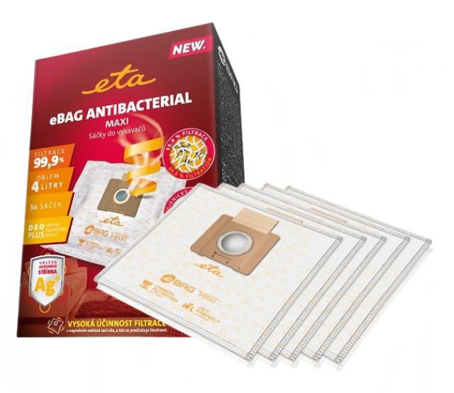 Originální syntetické sáčky ETA Antibacterial Maxi pro vysavače ETA1511, ETA0511, ETA2511, ETA3511 jsou ideální pro majitele domácích mazlíčků. Speciální antibakteriální vrstva eliminuje růst bakterií a zamezuje jejich šíření. Obsahují i aktivní uhlí, které neutralizuje nepříjemné pachy. Hygienické uzavírání zamezuje úniku vysátých nečistot a usnadňuje manipulaci při výměně sáčku. Sáčky jsou vysoce odolné proti nasáté vlhkosti a protržení tvrdými či ostrými předměty.