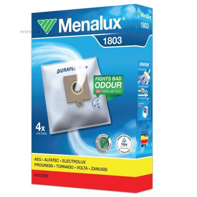 Menalux DURAFLOWTM Fresh = výjimečný sáček: Nové provedení sáčků syntetických sáčků Menalux (to poznáte podle označení na krabici (NEW - Fresh AIR TECH = FIGHTS BAD ODOUR) brání nepříjemným pachům jako jsou odpadky, pach z domácích mazlíčků, pot, cigaretový kouř, aromatické druhy zeleniny jako například cibule, a jiné, v úniku po vysávání ze sáčku. Některé provedení sáčků z netkané textilie je k dispozici pouze v původním provedení, postupně společnost Menalux přechází na provedení nové.