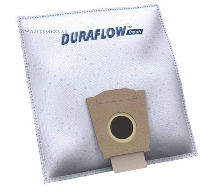 Zdravé prostředí díky výborné filtraci: Vynikající filtrace vám pomůže zachovat zdravější prostředí v domácnosti. Syntetický materiál sáčku DURAFLOWTM Fresh je zárukou optimalizovaného průtoku vzduchu než při využití papírového sáčku. To značí, že využití sáčků z netkané textilie DURAFLOWTM Fresh je ideální pro alergické osoby a zajistí všem zdravější prostředí.