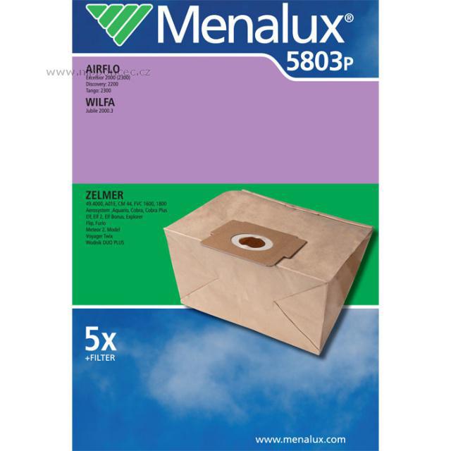 Sáčky do vysavače Menalux 5803P, papírové, 5ks v balení a mikrofiltr. Tyto filtrační sáčky můžete použít jako náhradní sáčky do uvedených vysavačů - tyto sáčky jsou alternativou sáčků originálních pro daný typ vysavače.