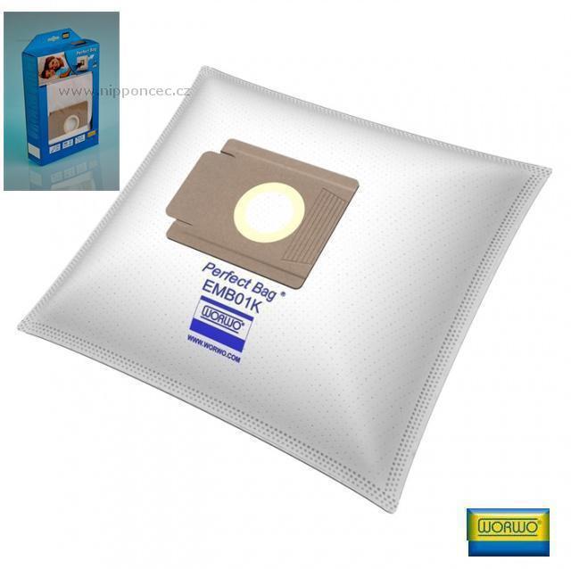 Sáčky do vysavače Worwo EMB01K výrobce Worwo přední evropský výrobce, držitel certifikace ISO 9001-2008. Sáčky do vysavače jsou vyrobeny z mikrovlákna, zajistí o o 29 % vyšší účinnost filtrace při vysávání než papírové sáčky. Jsou schopny zachytit prachové částice o velikosti 0,3 mikronu, jejich používáním prodloužíte životnost HEPA filtru vysavače u výstupu vzduchu. Stejně tak je emise prachu z vysavače snížena na 0,01 %. Sáčky do vysavače Worwo EMB01K Perfect Bag splňují požadavky filtrační třídy M – zadrží alergeny, spory plísní, exkrementy roztočů. Tím, že jsou pružnější než papírové sáčky do vysavače, zvýší sací výkon vysavače až o 20% - je s nimi možno vysávat až o 60% déle než s papírovým sáčkem , kde dojde po určité době užití k ucpání pórů sáčku= zhoršení proudění vzduchu ve vysavači. Navíc nedochází při jejich používání ke snižování sacího výkonu vysavače, které je jinak obvyklé, pokud se prachový sáček vysavače zaplní více jak ze dvou třetin své kapacity. Při výrobě sáčků do vysavače Worwo EMB01K Perfect Bag dbá výrobce na snížení odpadu při výrobě pro ochranu životního prostředí.