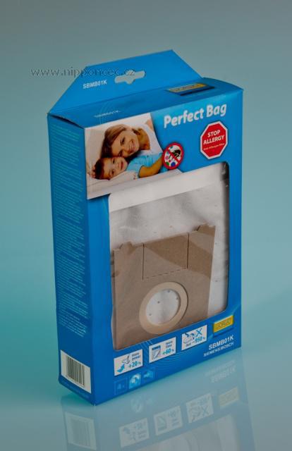 Sáčky do vysavače Perfect Bag SBMB02K výrobce Worwo přední evropský výrobce, držitel certifikace ISO 9001-2008. Sáčky do vysavače jsou vyrobeny z mikrovlákna, zajistí o o 29 % vyšší účinnost filtrace při vysávání než papírové sáčky. Jsou schopny zachytit prachové částice o velikosti 0,3 mikronu, jejich používáním prodloužíte životnost HEPA filtru vysavače u výstupu vzduchu. Stejně tak je emise prachu z vysavače snížena na 0,01 %. Sáčky do vysavače Perfect Bag SBMB02K splňují požadavky filtrační třídy M – zadrží alergeny, spory plísní, exkrementy roztočů. Tím, že jsou pružnější než papírové sáčky do vysavače, zvýší sací výkon vysavače až o 20% - je s nimi možno vysávat až o 60% déle než s papírovým sáčkem , kde dojde po určité době užití k ucpání pórů sáčku= zhoršení proudění vzduchu ve vysavači. Navíc nedochází při jejich používání ke snižování sacího výkonu vysavače, které je jinak obvyklé, pokud se prachový sáček vysavače zaplní více jak ze dvou třetin své kapacity. Při výrobě mikrovlákenných sáčků do vysavače Perfect Bag SBMB02K dbá výrobce na snížení odpadu při výrobě pro ochranu životního prostředí.
