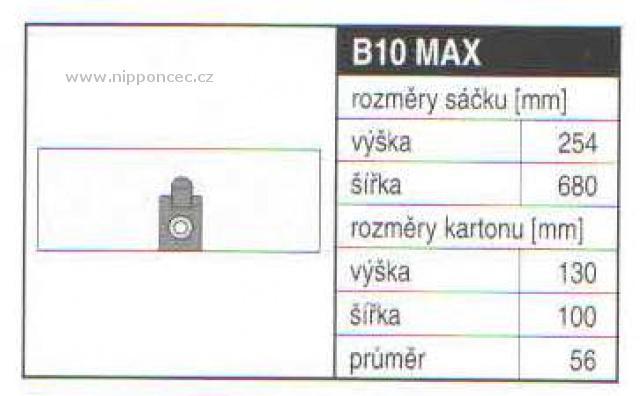 JOLLY B10 MAX sáček do průmyslového vysavače Nilfisk, TMB, Bosch... z netkané textilie, antibakteriální 3ks v balení rozměry kartonu: šíře 100 mm, výška 130 mm, průměr otvoru 56 mm rozměry sáčku : šíře 680 mm, výška 254 mm