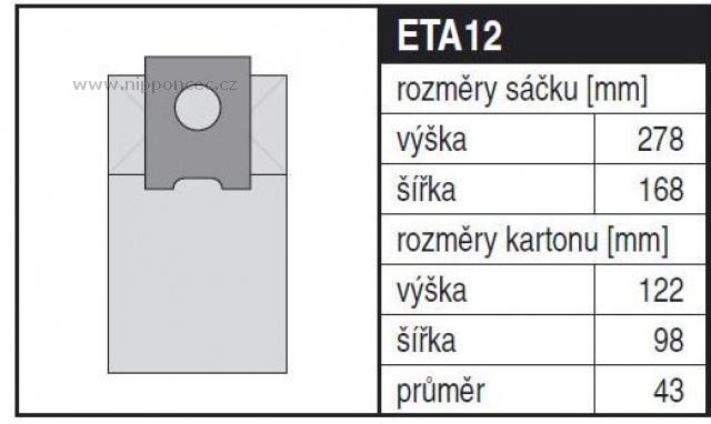 Sáčky do vysavače Jolly ETA12 papírové 10ks Jolly ETA12: dodávka 10ks náhradních sáčků kompatibilních pro značení ETA 3, HOOVER H8 je určena pro vysavač ETA 0403, ETA 1403, ETA 2403, ETA 3403, HOOVER Sensotronic, HOOVER Sensotronic System, LG Electronics Turbo 1200, Turbo 2000, Turbo 3000, LG Electronic V 2700, LG Electronic V 2710.... dalších vysavačů z filtračního papíru, součástí je 2x vůně zdarma. - Sáčky Jolly ETA12 do vysavače Eta 0403, 1403, 2403, 3403,LG,Dirt Devil,Hoover a jiných