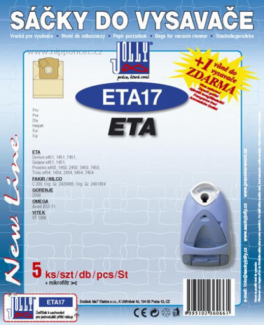 - Sáčky Jolly ETA17 do vysavače Eta 450 Proximo, Eta 0451 Trino, Trimo, Denso a jiných