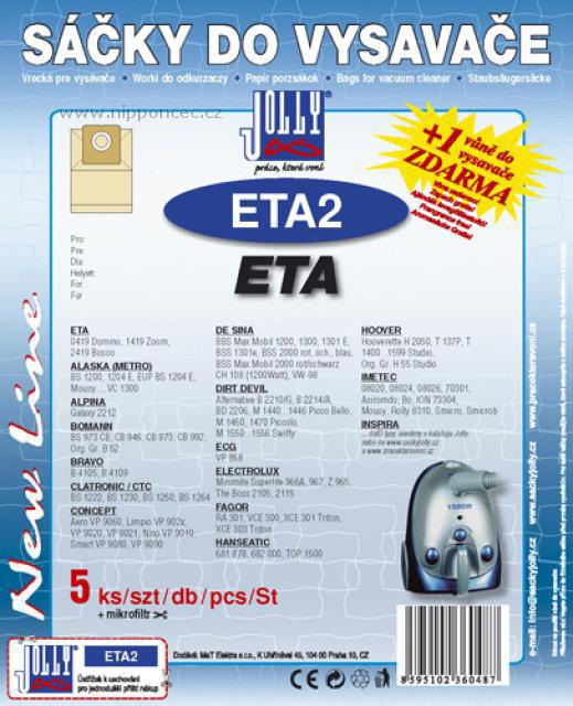 Sáčky do vysavačů Jolly ETA2 jsou vhodné pro značky a typy: