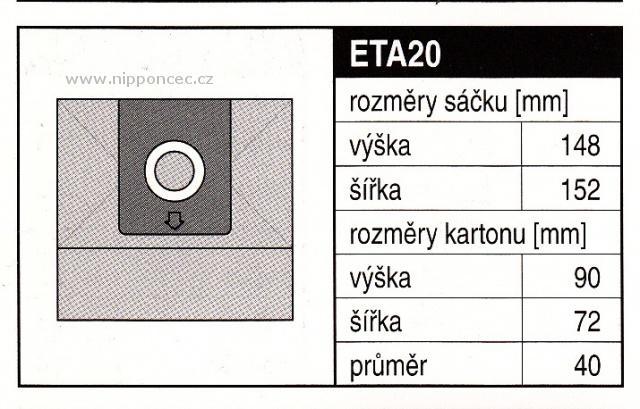 - Sáčky Jolly ETA20 do vysavače Eta Rio Vega, Eta 1678, Eta značení 28