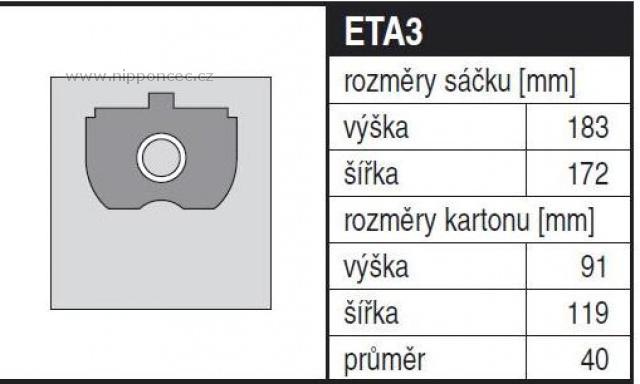 - Sáčky Jolly ETA3 MAX do vysavače ETA 414 Draco, 415 Arcus, 1498 Tema, Siemens typ N a R, Bosch BSB 1100, 1200 a dalších