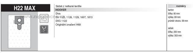 Sáčky do vysavačů Hoover H68A, H68, Hoover Diva jsou vhodné pro produktová značení: HOOVER Diva DV 1125 HOOVER Diva DV 1126 HOOVER Diva DV 1129 HOOVER Diva DV 1607 HOOVER Diva DV 1813 HOOVER DVG 1122 HOOVER Org. Gr. H68 HOOVER Org.Gr. H68A ...