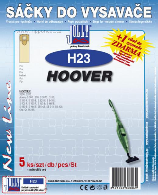 Sáčky do vysavačů Jolly H23 papírové 5ks Jolly H23 to je balení 5ks náhradních sáčků pro vysavače HOOVER z filtračního papíru, součástí balení je 1x vůně zdarma, a 1x mikrofiltr k nástřihu. Sáčky jsou určeny pro vysavače Hoover Acenta, Hoover H 21 A - Sáčky Jolly H23 do vysavačů Hoover Acenta, Hoover H 21 A aj.