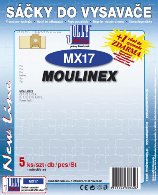 - Sáčky Jolly MX17 do vysavačů Moulinex CE1, CE2, CE4, Moulinex DJ1, DJ3, DJ4, DJ5 a Moulinex Power Pack a dalších
