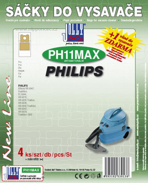 Jolly PH11 MAX : Antibakteriální sáčky do vysavače Philips Athena, Duathlon, Triathlon 4ks