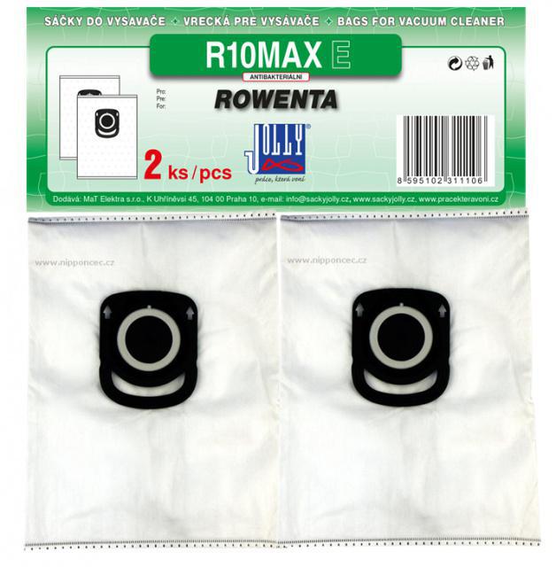 Sáčky do vysavače Jolly R10 MAX jsou sáčky náhradní (alternativní) pro vysavače ROWENTA/TEFAL Tyto sáčky jsou kompatibilní pro značení výrobce ROWENTA ZR200540, ROWENTA ZR200520, ROWENTA ZR200720, ROWENTA ZR200740, ROWENTA ZR200920 a určeny pro produktové řady vysavačů ROWENTA Compact Power 3A, ROWENTA Power XXL, ROWENTA Silence Force Compact RO63xx, ROWENTA RO49xx Green Force MAX, ROWENTA Silence Force Compact RO63xx, ROWENTA RO68xx X-Trem Power 3A, ROWENTA RO73xx Silence Force 5*, ROWENTA RO74xx Silence Force Allergy, ROWENTA X-Plorer S65+, ROWENTA X-Plorer S70+, ROWENTA X-Plorer S75S+, ROWENTA X-Plorer S220+, X-Plorer S240+.Sáčky Jolly pro vysavače Rowenta z netkané textilie jsou antibakteriální. Sáčky s označením MAX - jsou sáčky nové generace s vysokou schopností filtrace. Ať již je nazveme jakkoli - textilní, z netkané textilie, mikrovlákno, SMS - jedno mají vždy společné - a to je fakt, že jsou syntetické - vyhovující zvyšujícím se potřebám koncového uživatele, z hlediska výroby i následné likvidace odpadu jsou ekologičtější.