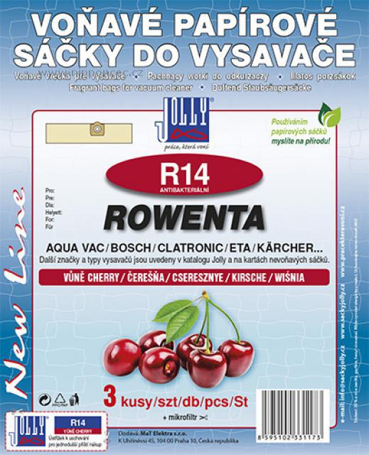 Jolly R14 MAX to je balení 4 ks náhradních sáčků do vysavačů určených mimo jiné pro vysavače AEG Vampyr Multi 300, AQUA VAC, BOSCH Amphibixx, BOSCH PAS 11-21, ETA Barello 4222, ETA Rowenta 0404, CLATRONIC, COLUMBUS, CMI, DELONGHI, EINHELL, ETA, ETA Rowenta 0404, HITACHI, KÄRCHER 6.959-130.0, KRESS, LAVOR, MERIDA, OBI, ROWENTA ZR 81, ZR 814, ZR 815, ZR 816, ROWENTA Bully, ROWENTA RU 100, ROWENTA Wet and Dry, SHOP VAC, SOTECO, TOP CRAFT, THOMAS, WAP Značení SWIRL R24....a mnoha dalších, z netkané textilie, antibakteriálních, součástí je 2x vůně zdarma a 2x filtr k nástřihu. Speciální vícevrstvý materiál sáčků Jolly zajistí zvýšený sací výkon vysavače i v případě částečného zaplnění sáčku, kdy u papírových sáčků vlivem ucpávání mikropórů výkon vysavače přirozeně klesá = sáček nemusíte tak často měnit. Textilní sáčky jsou odolné proti vlhkosti, jsou pevné, filtrují až o 40% lépe, než papírové sáčky, syntetický materiál je pružný - sáček se dobře přizpůsobí velikosti komory vysavače, a vysavač neztrácí na výkonu.
