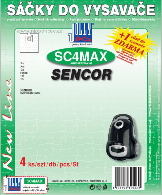 Jolly SC4 MAX : 8 ks náhradních sáčků do vysavačů Sencor SVC 9000BK, Sencor SVC9000 Nineto, SVC 9050..., z netkané textilie, antibakteriálních, součástí balení je 2x vůně zdarma . - Sáčky Jolly SC4 MAX do vysavače Sencor SVC 9000BK, Sencor SVC9000 Nineto, SVC 9050