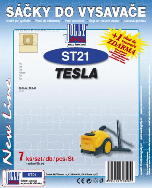 Sáčky do vysavače Jolly ST21 papírové 7ks Jolly ST21 to je balení 7ks náhradních sáčků pro vysavač Tesla / Team ST 21 a značení KM E27 z filtračního papíru, součástí balení je mikrofiltr k zastřižení 1ks, 1x vůně. Sáčky do vysavače ST21 můžete použít jako náhradní sáčky do uvedených vysavačů - tyto sáčky jsou alternativou sáčků originálních pro daný typ vysavače.