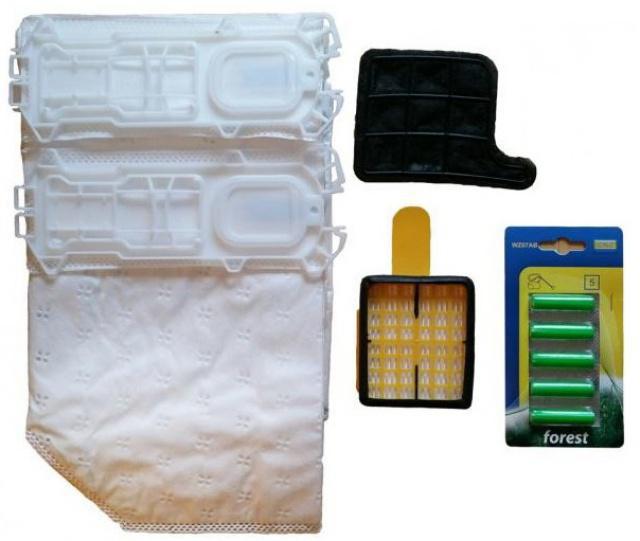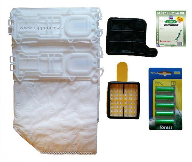 Sada alternativního příslušenství - HEPA filtr HF15 do vysavače Vorwerk Kobold VK 135, VK 136, pachový filtr M5 do vysavače Vorwerk Kobold VK 135, VK 136 a 5 vůní Worwo Les - zdarma k nákupu sáčků do vysavačů : 2 balení sáčků pro vysavače Vorwerk od výrobce Jolly se značením V3 MAX z netkané textilie, antibakteriální náhradní sáčky. V balení pytlíků jsou navíc 2 granulované vůně - v každém balení sáčků 1 kus.