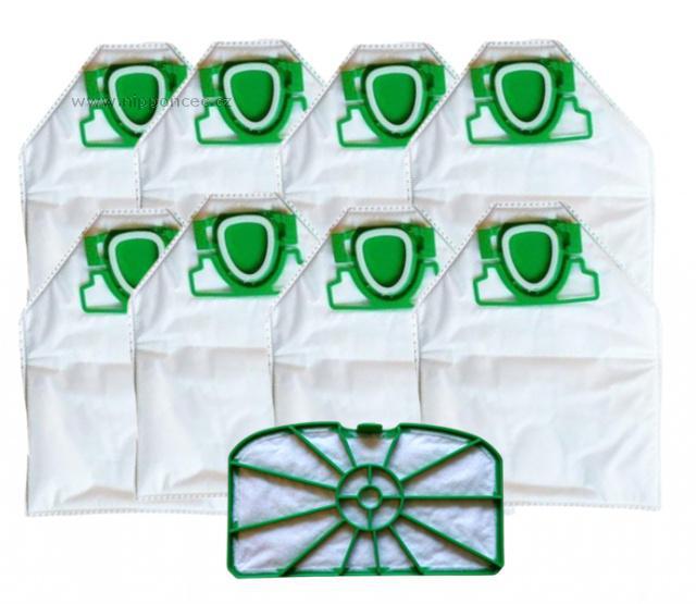 Sada obsahuje 8 ks náhradních sáčků do vysavačů Vorwerk VK 200, Kobold VK 200, Org.Gr. FP 200 a 1x ochranný motorový filtr Sáčky z netkané textilie jsou antibakteriální, součástí balení sáčků je 2x vůně zdarma .