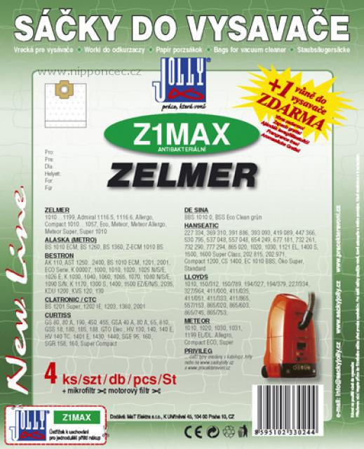 Jolly Z1 MAX to je balení 4 ks náhradních sáčků do vysavačů Alaska, Lloyds, Zelmer Admiral, Meteor, Eco Super a dalších značek a typů vysavačů, z netkané textilie, antibakteriálních, součástí balení je 1x vůně zdarma, 1x filtr, 1x motorový filtr. Sáčky jsou určeny pro vysavače: ZELMER 1010...1199 1010.0 1010.05 1020.5 1030.0 1030.5 1057.5 1117.0 1117.5 1117.6 ZELMER Admiral 1116.5 ZELMER Allergo ZELMER Compact 1010...1057 ZELMER Eco ZELMER Meteor ZELMER Meteor Allergo ZELMER Meteor Super ZELMER Super 1010 ALASKA: BS 1010 ECM BS 1260 BS 1360 Z-ECM 1010 BS BESTRON AK 110 AST 1250...2400 BS 1010 ECM BS 1201 ECM BS 2001 ECM ECO Serie K 00007 K 1000 K 1010 K 1020 K 025 N/S/E K 1026 E K 1030 K 1040 K 1060 CLATRONIC: BS 1201 Super BS 1202 IE BS 1203 BS 1360 BS 2001 CURTISS DE SINA BBS 1010.0 HANSEATIC 419 089 447 366 530 795 537 048 METEOR 1010 1020 1030 1031 1199 EL/DL Allegro METEOR Compact METEOR ECO METEOR Super OMEGA ROTEL SOLAC aj..- Sáčky Jolly Jolly Z1 MAX do vysavače Zelmer Admiral, Meteor, Eco, Super a dalších