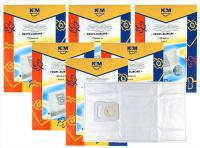 Sáčky z mikrovlákna od společnosti KM jsou obvykle složené ze 4, 5 nebo 9 vrstev filtračního vlákna. Tento druh vysavačových sáčků poskytuje lepší průtok vzduchu ve srovnání s papírovým pytlíkem. Také udržuje vysokou účinnost filtrace v průběhu vysávání (namísto papírového pytle, kde dochází k poklesu výkonu, když je sáček již částečně plný). Díky vysokému stupni filtrace je i vzduch vycházející z přístroje výrazně čistší, ve srovnání s použitím sáčku z papíru.