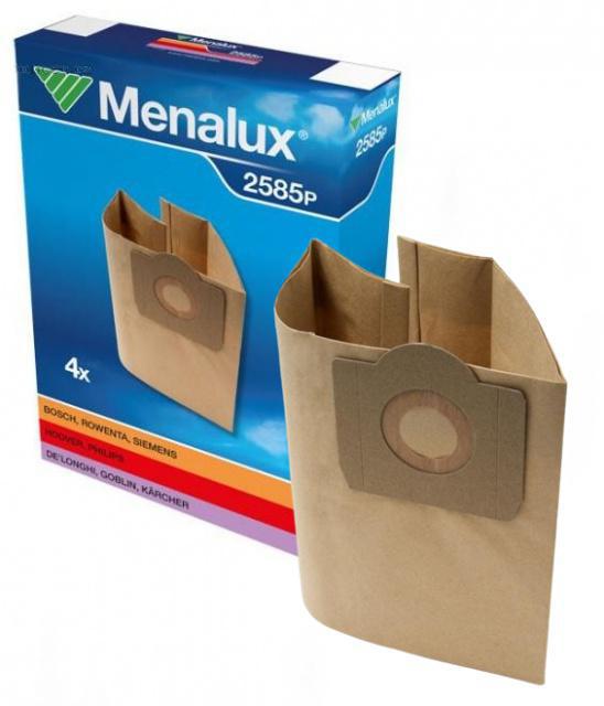 Sáčky Menalux 2585P do vysavačů Aqua Vac, Einhell, Eta, Rowenta, Fakir, Hoover.... papírové 4ks Menalux 2585 P sáčky do vysavače XL - 710x 230 mm papírové, 4ks v balení. Tyto klasické sáčky do vysavačů použijete pro mnoho typů a značek: AEG Vampyr Multi, Alfatec Bidone, AQUA VAC Plus 1000, Arnica LC, Bosch 2605411150 kompatibilní, Bosch PAS 11-21, Columbus ST 12, Einhell AS 1100, ETA Neptun Trio, FIF Lavorwash GBX, Goblin Wizzard, Kärcher wd 3.200, Merox Venti XE, Rowenta Bully, Rowenta ZR702, Rowenta ZR81, Rowenta RB14, Rowenta RU 101 až 111, Rowenta Vorace, Shop Vac K11-SQ14, Thomas Multisauger, Wap ST 10, Wap ST 15, SWIRL UNI 20a další.