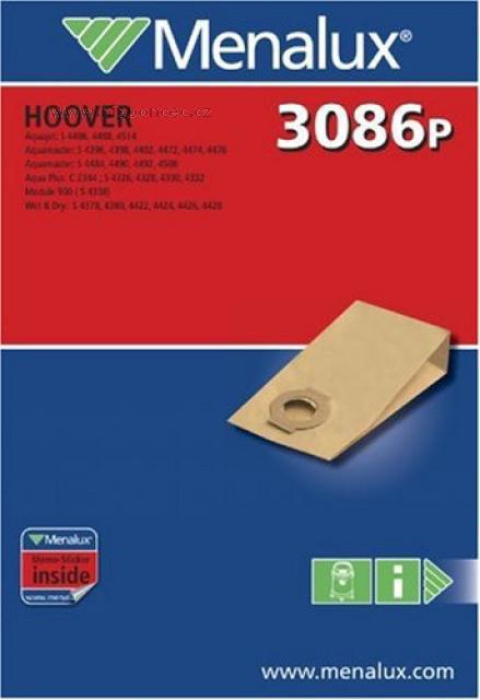 Papírové sáčky do vysavače Menalux 3086P 5ks Sáčky do vysavače Menalux 3086P, papírové, 5ks v balení. Sáčky jsou vhodné pro vysavače Hoover H15, Hoover H16. Výrobce Electrolux pod svou značkou Menalux. Sáčky Menalux 3086P pro vysavače Hoover H15, Hoover H16 - 5 ks v balení