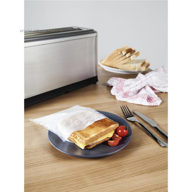 Neradi myjete sendvičovač, kontaktní gril nebo vyklepáváte drobečky z topinkovače? Vyzkoušejte opětovně použitelné sáčky na přípravu toustů, sendvičů, pizzy a panini v toustovači nebo sendvičovači. Sáčky jsou opatřeny nepřilnavou povrchovou úpravou. Snadno je lze mýt v myčce nádobí. Váš topinkovač a sendvičovač zůstane čistý bez drobků a připečeného sýra. Tip pro celiaky - díky sáčkům můžete připravovat sendviče z běžného chleba a zároveň bezlepkového, aniž by došlo ke kontaktu speciálního chleba pro celiaky s běžným pečivem. Sáčky je možno opakovaně použít až 50-krát. Balení obsahuje 2 kusy sáčků.