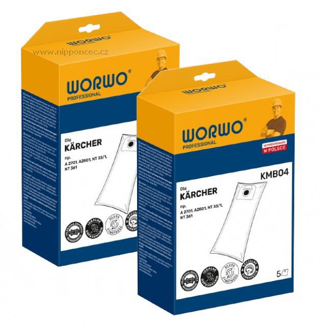 Sáčky do vysavače Worwo KMB04 Professional textilní 10ks Průmyslové sáčky do vysavačů z mikrovlákna Worwo KMB04 (dříve KMB04K) odfiltrují i alergeny, a zadrží prachové částice o velikosti 0,3 mikronu, snižují emisi prachu z vysavače. 10ks sáčků v dodávce. Díky použitému materiálu a technologii svařování ultrazvukem jsou pevné. Sáčky jsou kompatibilní pro značení KÄRCHER 2.863-006.0, KARCHER 6.904-210.0, KARCHER 6.904-351.0, MIRKA 8999700211, NAREX 00763288, NILFISK 302002404, SCHEPPACH 79077002705 a jsou vhodné pro širokou škálu průmyslových vysavačů Asist, Berner, Bosch, Bosch GAS 12-25 PL , Bosch GAS 12-50, Bosch GAS 15 S, Bosch GAS 35 L AFC, Bosch Gas 35 M AFC, Black Decker,, DeLonghi W20, Dewalt, Dewalt DWW 901L, Einhell, Flex, Hilti, Hikoki RP250YDM, Hikoki, Lavor, Kärcher, Kärcher NT 30/1, Kärcher NT 35/1, Kärcher NT 65/2, Kärcher WD 4, Kärcher WD 6 Premium, Kärcher, Klarstein, Makita, Makita VC 2512 L, Makita VC 2012 L, Metabo, Milwaukee, Milwaukee AS 30 LAC, Mirka, Mirka 1025L, Mirka 1025 L AFC, Narex VYS 25-21, Narex VYS 30-21, Narex, Nilfisk Aero 21, Nilfisk Aero 25, Nilfisk Aero 26, Nilfisk, OBI, Proma PPVO 1400/30, Protool VCP 250 E, Scheppach, Stanley, Stihl, Stihl SE 33, Stihl SE 61, Top Craft, Wap, Würth, Würth HWS 15-L...Tento druh sáčků je vhodný pro profesionální užití - využijete při průmyslovém vysáváním, stejně tak při rekonstrukci, náročném úklidu, výstavbě apod.