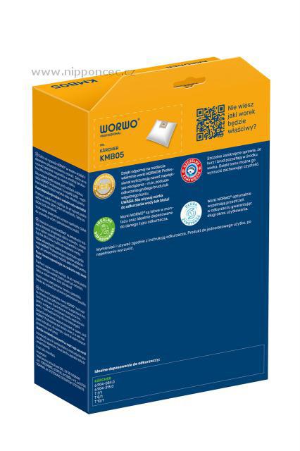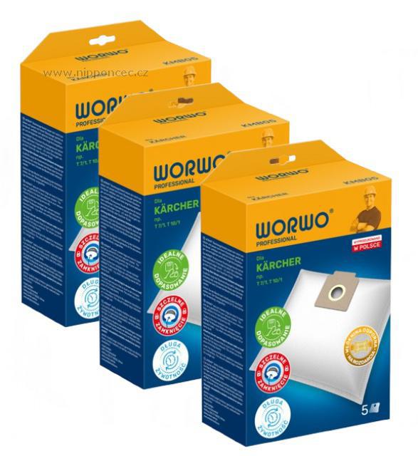 Sáčky do vysavače Worwo KMB05 Professional 15ks Sáčky Worwo KMB05 (dříve KMB05K) jsou kompatibilní pro značení KÄRCHER 6.904-084.0, KÄRCHER 6.904-315.0, KÄRCHER 6.904-096.0, KÄRCHER 6.904-315.0, KÄRCHER 6.904-333.0, KÄRCHER 6.904-336.0 a jsou určeny pro vysavače KÄRCHER T 7/1, KÄRCHER T 7/1 Classic, KÄRCHER T 7/1 Professional, KÄRCHER T 7/1 eco!efficiency, KÄRCHER T 10/1, KÄRCHER T 10/1 Professional, KÄRCHER T 10/1 Eco! Eficiency, KÄRCHER T 11/1 Classic EU, T 11/1 Classic HEPA EU, KÄRCHER T 9/1 Bp......jsou vyrobeny ze silného materiálu, 5 ks v balení. Tyto sáčky jsou skutečně sáčky do průmyslového vysavače, odfiltrují i alergeny, a zadrží prachové částice o velikosti 0,3 mikronu, snižují emisi prachu z vysavače.