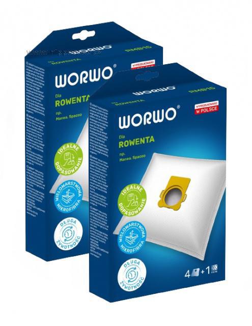 Sáčky do vysavače Worwo RMB15K mikrovlákno 8ks Sáčky Worwo RMB15 (dříve RMB15K) do vysavačů Rowenta Silence Force / Compact / Extreme jsou vyrobeny v EU z mikrovlákna (netkaná textilie) 8 ks sáčků v dodávce a 2x filtr k nástřihu. Sáčky jsou kompatibilní pro značení výrobců ROWENTA Wonderbag WB406120, ROWENTA WB406140, ROWENTA WB484740, ROWENTA WB484701, JOLLY R15 MAX, SWIRL R36, MENALUX 2306a jsou určeny pro produktové řady vysavačů ROWENTA Artec 2,ROWENTA Compact Power,ROWENTA Manea,ROWENTA Silence Force,ROWENTA Silence Force Eco,ROWENTA Silence Force Compact,ROWENTA Silence Force Extreme,ROWENTA Silence Force Extreme, Compact,ROWENTA Silence Force X-Trem,ROWENTA Silence Force X-Treme,ROWENTA X-Tream Power XL,ROWENTA Spaceo, ROWENTA RO462701 Silence Force Compact, ROWENTA RO472301 Silence Force Compact..... V balení nejsou záslepky, ani univerzální adaptér, jako u sáčků originálních.