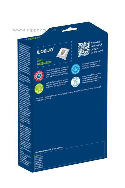 Sáčky do vysavače Worwo ROBMB01 9ks Sáčky Worwo ROBMB01 (dříve ROBMB01K)- (odpadní pytle) jsou určeny pro robotické vysavače iRobor Roomba Combo Essential 2, iRobot Roomba E5 , iRobot Roomba E6, iRobot Roomba i3, i3+, iRobot Roomba i4, i4+, iRobot Roomba i5, i5+, iRobot Roomba i6, i6+, iRobot Roomba i7,i7+, iRobot Roomba i8, i8+ iRobot Roomba j7, j7+, iRobot Roomba j7 Combo, j7+ Combo , iRobot Roomba S9, S9+, iRobot Roomba S9+ Combo, iRobot Roomba Combo 10 MAX... a další. Odpadní pytle se vkládají do samo vyprazdňovací stanice robotického vysavače a slouží k uskladnění maximálně 30ti zásobníků s nečistotami, které vysavač nasbíral v průběhu vysávání. Doporučená výměna sáčků se pohybuje v rozmezí 1 - 2 měsíců - to je odvislé na četnosti vysávání a stupni znečistění vysávaných povrchů. 9ks sáčků v dodávce.