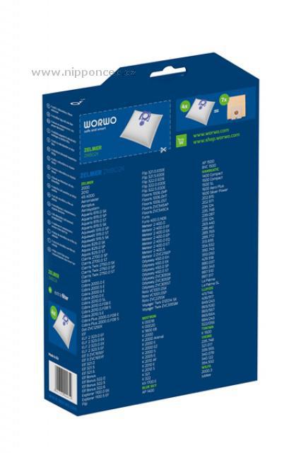 Sáčky Worwo ZMB02 (dříve ZMB02K) pro vysavače typu BBZWD4BAG a ZVCA100B jsou kompatibilní pro značení ZELMER 49.4020, ZELMER 49.400, ZELMER ZVCA100B, ZELMER ZVCA111, JOLLY Z2, JOLLY Z2 MAX, SWIRL Z111, KOMA ZE01PL a jsou určeny pro vysavače BOSCH AquaWash & Clean BWD420HYG, BOSCH BWD421PET, BOSCH BWD421POW, BOSCH BWD421PRO, BOSCH BWD41700, BOSCH BWD41720, BOSCH BWD41740, ZELMER Active Go, ZELMER Aquario, ZELMER Aquos, ZELMER Aquawelt, ZELMER Aeromaster, Aeroplus, ZELMER Antek, ZELMER Aquos, Aquario, Aquawelt, ZELMER Clarris 2700, ZVC341, ZVC345, ZVC345, ZELMER Clarris Twix, ZELMER Cobra, Cobra 2000, Cobra 2000 Plus, Cobra 2010 ZELMER DOT ZELMER Delfin, ZELMER Elf, Elf 2, Elf 3 ZELMER Explorer 1100 ZELMER Flip 321, Flip 322, ZELMER Flooris VC1006, Flooris ZVC541, ZVC542, ZVC545 Flooris ZELMER Furio 400 ZELMER Meteor 2 400, Meteor 2 ZVC212, ZVC215, ZELMER Odyssey 450, Odyssey ZVC302, ZVC305 ZELMER Protecto ZELMER Roto, ZELMER Silentwelt ZELMER Voyager Twix Sáčky se dodávají po 12ks + 3 filtry k zastřižení, jsou vyrobeny v EU, odfiltrují i allergeny a zadrží prachové částice o velikosti 0,3 mikronu, snižují emisi prachu z vysavače, díky použitému materiálu a technologii svařování ultrazvukem jsou pevné.