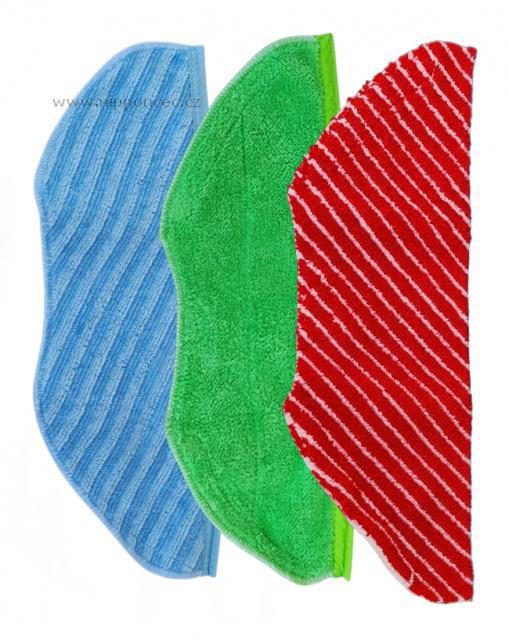 Sada obsahuje následující: 1 x modrý hadřík z mikrovlákna na všechny typy podlah, 1 x červený hadřík z mikrovlákna na odstranění zvířecích chlupů a houževnatých skvrn, 1 x zelený hadřík z chmýří: k odstranění jemných částic pomocí statické elektřiny, 2 x boční kartáčky do rohů a obtížně přístupných zón, 1+ 1 vysoce účinný filtr, který zachytí až 99,9% alergenů.