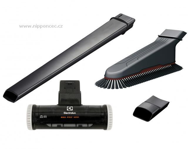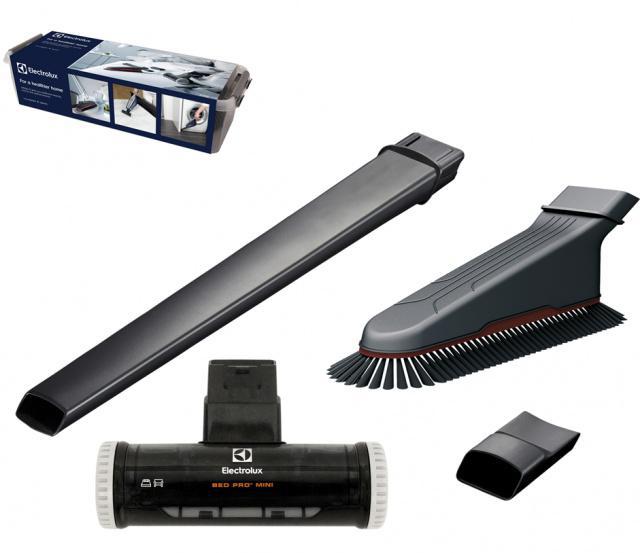 Sada Allergy Kit obsahuje: jemný povrchový kartáč s měkkými štětinami, štěrbinovou hubici ideálních pro hůře dostupná místa a turbokartáč BedPro TM MINI pro údržbu postelí, matrací, autosedaček a ložního prádla K vysavačům ErgoRapido připojíte rovnou, pro ruční vysavače Rapido je přiložený v balení adaptér HX6/Rapido. Sada hubic Electrolux Rapido je uložená v praktickém plastikovém boxu.