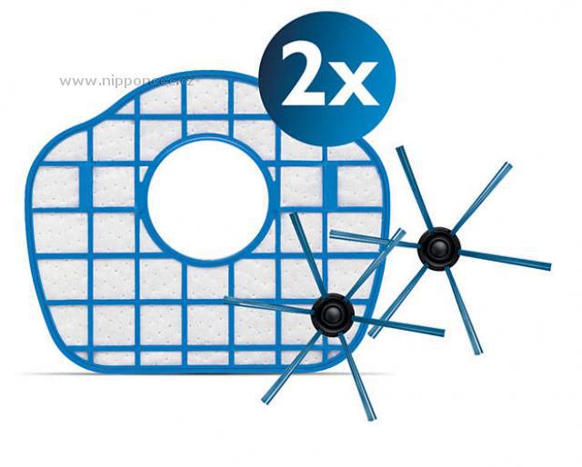 Výměnná sada pro robotický vysavač Philips SmartPro Compact FC8722, FC8774, FC8776, FC8972 - sada obsahuje 2 filtry + 2 kartáčky. Výměnou filtrů ve svém vysavači každé 4 měsíce prodloužíte významně životnost svého spotřebiče.Výměnou filtrů jedenkrát za rok zajistíte optimální sběr prachu a nečistot. Docílíte dokonalejšího úklidu díky sběru každého zrnka nejjemnějšího prachu.
