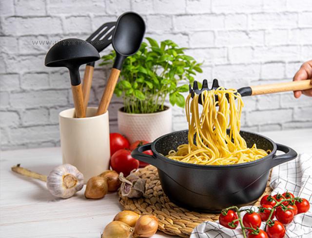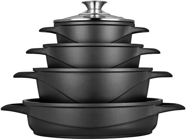 3 x hrnec, 1x kastrol, 4 x poklička, 2 x silikonová chňapka, vhodné i pro indukční ohřev.
