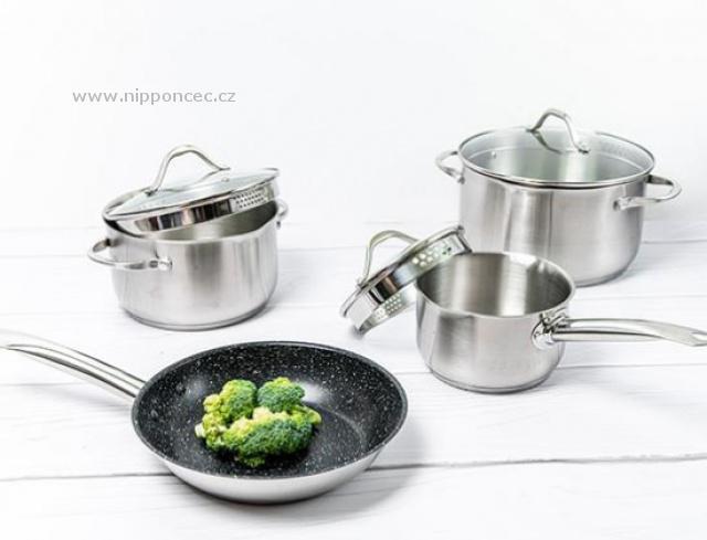 Sada dvou hrnců, rendlíku a pánve z kvalitní nerezová oceli