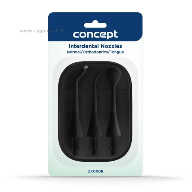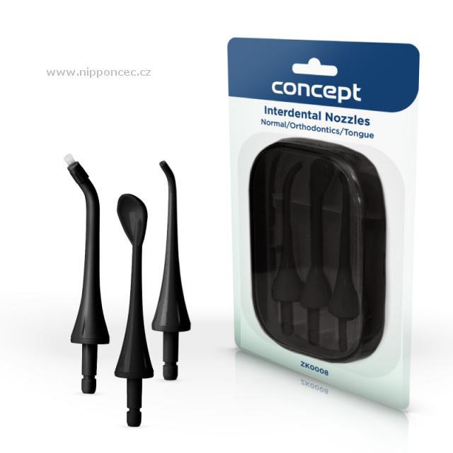Sada náhradních hlavic ZK0008 je plně kompatibilní s modely dentální sprchy Concept PERFECT SMILE ZK402x a ZK4030. Balení obsahuje 3 nástavce. Tryska NORMAL se hodí pro běžné čištění zubů. Hlavice ORTHODONTICS vám pomůže odstranit nečistoty z obtížně přístupných míst kolem rovnátek. Nástavec TONGUE je určený k šetrnému čištění jazyka, čímž současně přispívá k udržení svěžího dechu. Aby trysky neztratily svůj efekt, doporučujeme je měnit každých 6 měsíců.