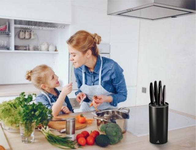 Vysoce kvalitní 5 dílná sestava nožů Kluge SMILE SNS-3 z nerezové oceli se hodí do každé kuchyně. Součástí sady je i kulatý blok s vložkou na skladování nožů, který je vhodný pro ocelové i keramické nože. Komfort použití zvyšuje protiskluzový úchyt a nepřilnavé ostří.