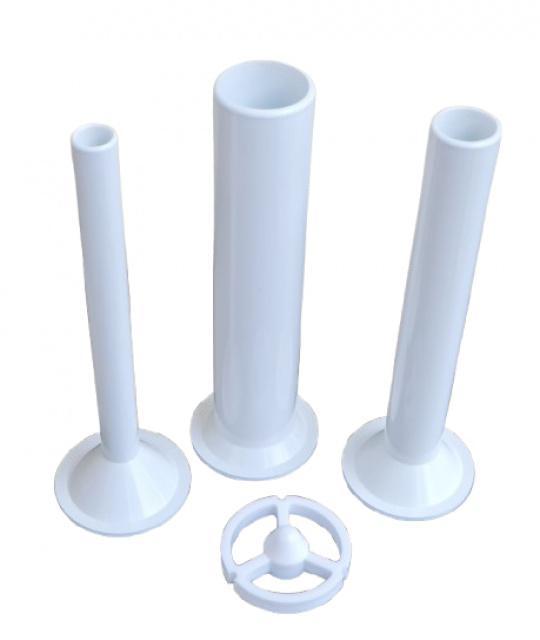 Sada řeznických nástavců 15/24/36 pro mlýnek na maso č. 5. Sada obsahuje 3 nástavce pro přípravu kabanos (15 mm), klobás (24 mm), krakovské klobásy (36 mm).