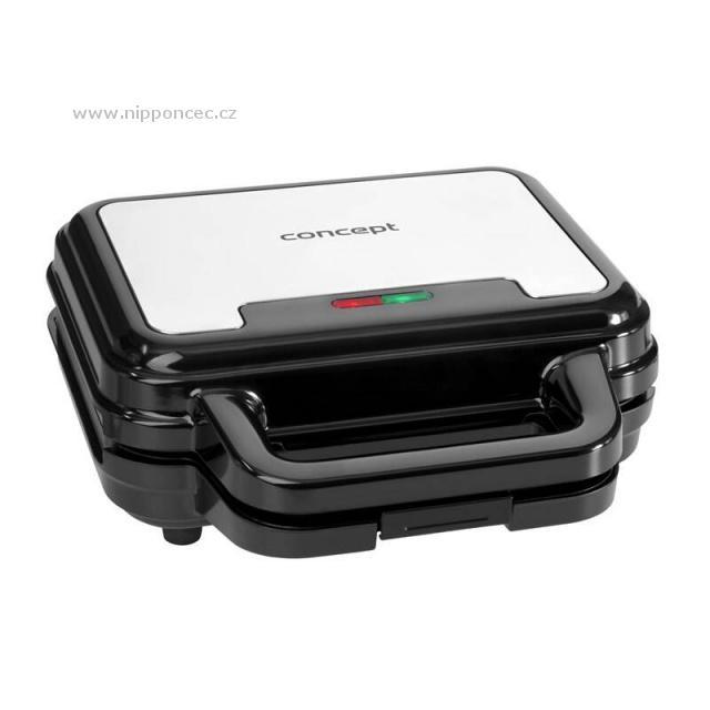 Sendvičovač Concept SV3030 v elegantním nerezovém designu se čtyřmi trojúhelníkovými plotýnkami s nepřilnavým povrchem zajistí, že se sendviče nepřipékají. S tím je spojená i jednoduchá následná údržba, která zabere minimum času.