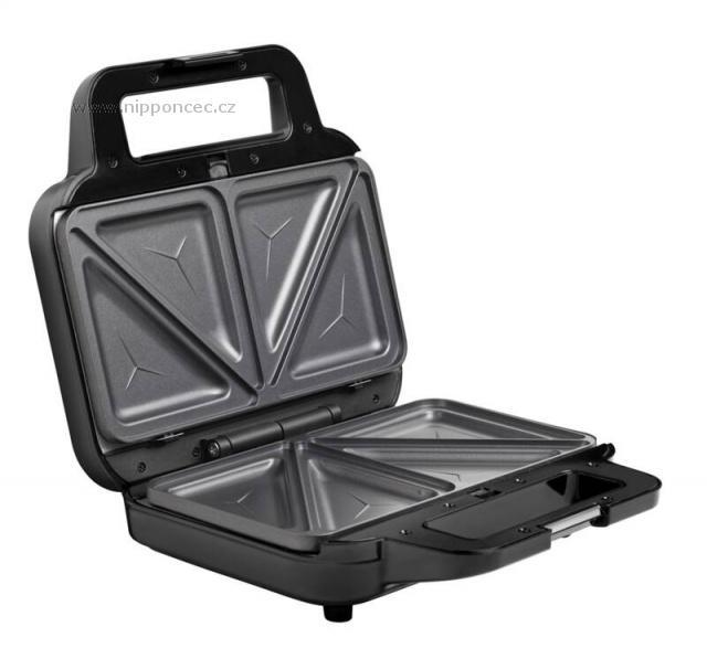 Praktický sendvičovač TRISTAR SA 3050 s vroubkovanými ploténkami pro téměř všechny druhy pečiva. Výkon sendvičovače činí 750W. Můžete jej dobře využít i na menší množství masa a zeleniny. Ploténky jsou vroubkované pro charakteristické opečení panini baget nebo např. kuřecího masa. Ploténky jsou opatřené nepřipékavým povrchem na bázi teflonu, dobře se čistí - většinou po použití postačí otřít je navlhčeným hadříkem nebo kuchyňskou papírovou utěrkou.