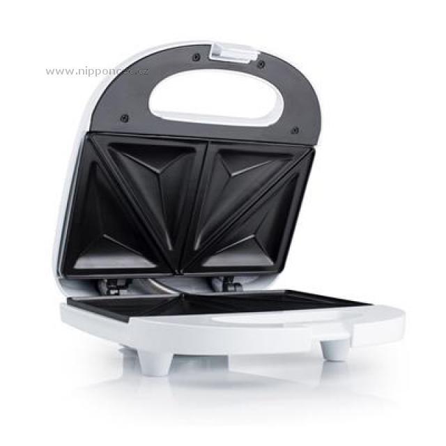 Praktický sendvičovač TRISTAR SA 3050 s vroubkovanými ploténkami pro téměř všechny druhy pečiva. Výkon sendvičovače činí 750W. Můžete jej dobře využít i na menší množství masa a zeleniny. Ploténky jsou vroubkované pro charakteristické opečení panini baget nebo např. kuřecího masa. Ploténky jsou opatřené nepřipékavým povrchem na bázi teflonu, dobře se čistí - většinou po použití postačí otřít je navlhčeným hadříkem nebo kuchyňskou papírovou utěrkou.