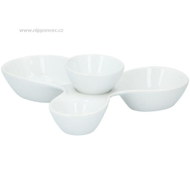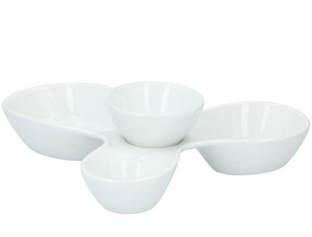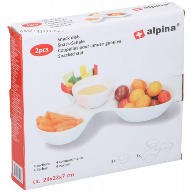 Miska na občerstvení Alpina 18490 je praktickým doplňkem při stolování. Hodí se na rodinné oslavy, setkání přátel a slavnostní večírky. Bude užitečná při servírování omáček, dipů a občerstvení, jako jsou olivy, cherry rajčata, nakrájené sýry. Rovněž můžete misky použít pro estetické servírování slaných arašídů, preclíků či mandlí. Sada obsahuje 1x trojmiska na servírování a 1x miska na omáčku.