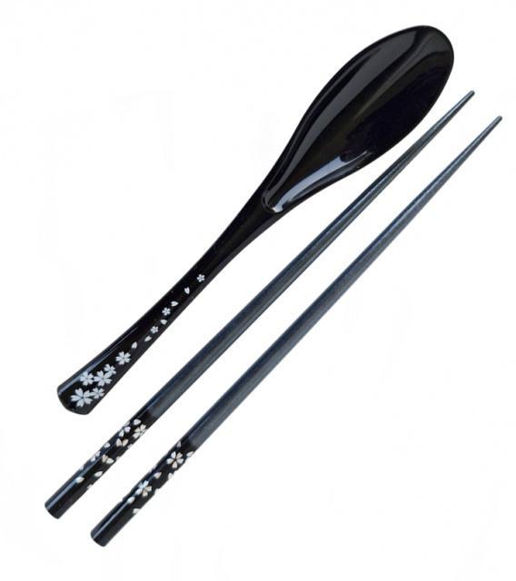 Sada Wakasanuri Grey se skládá z japonských jídelních hůlek a polévkové lžíce s motivem třešňových květů. Set obdržíte v elegantní dárkové krabičce.