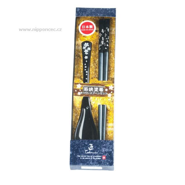 Set japonských jídelních hůlek a lžíce Wakasanuri Grey